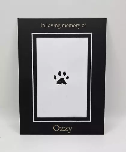 Our ink paw print keepsake is an ink print of your beloved companion's paw, presented in a card frame. Please let us know if you would like to have this keepsake when you contact us about your pet's cremation.